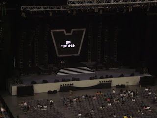 在外面等候的時候大概是座位賣完了,常常走著走著就會遇到有人問你有沒有多的票,而且看到好多人拿花(原來可以獻花,我也想要啦!),一開始Vitas就先為四川大地震哀悼,聽到的時候覺得他講話的聲音真的是很一般的男生聲音,後來聽到開始唱歌時真的是很震撼,讓人感到不可思議,好清亮透徹的聲音。