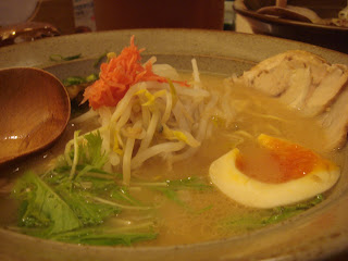 這是我點的蘿蔔絲蔥花豬排(正確的菜名我已經忘了),擠上葡萄柚、加上碟子旁邊附的醬汁後,再沾上剛剛磨好的芝麻醬入口非常清爽,口感很多層又特別,先是微酸的葡萄柚香味,然後是葡萄絲的清爽與汁融入在豬排裡,豬排外層酥脆適中,芝麻醬配上豬排非常對味可口!