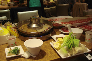 地點在鍋大爺,不是鍋大王喔!很容易走錯的,鍋大爺食材新鮮,湯頭比較像藥膳,還蠻濃郁的,Haagen Dozs和明治冰淇淋很讚,但是最不滿意的就是一點都不辣,偏偏我很愛吃辣,而且想要辣一點加辣湯還要自己去拿(那他們的服務費是加在哪裡?冏),而且又有時間限制,很不盡興,所以整體而言普通,還是台南的富記好,下次可以吃看看台中的鼎王,身為台中人沒吃過實在很跟不上時代。