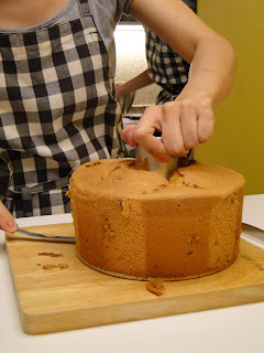 不過學完了這堂課我也發現過去自己很多做蛋糕的小技巧都是錯誤的,原來有這麼多小撇步食譜都不會寫,今天用這些新方法做出來的蛋糕真的是蓬鬆好吃,連蔡咩也說"好吃"喔,(還是因為第一次做戚風蛋糕要給我信心勒這樣我以後才會繼續做給他吃勒,哈哈)