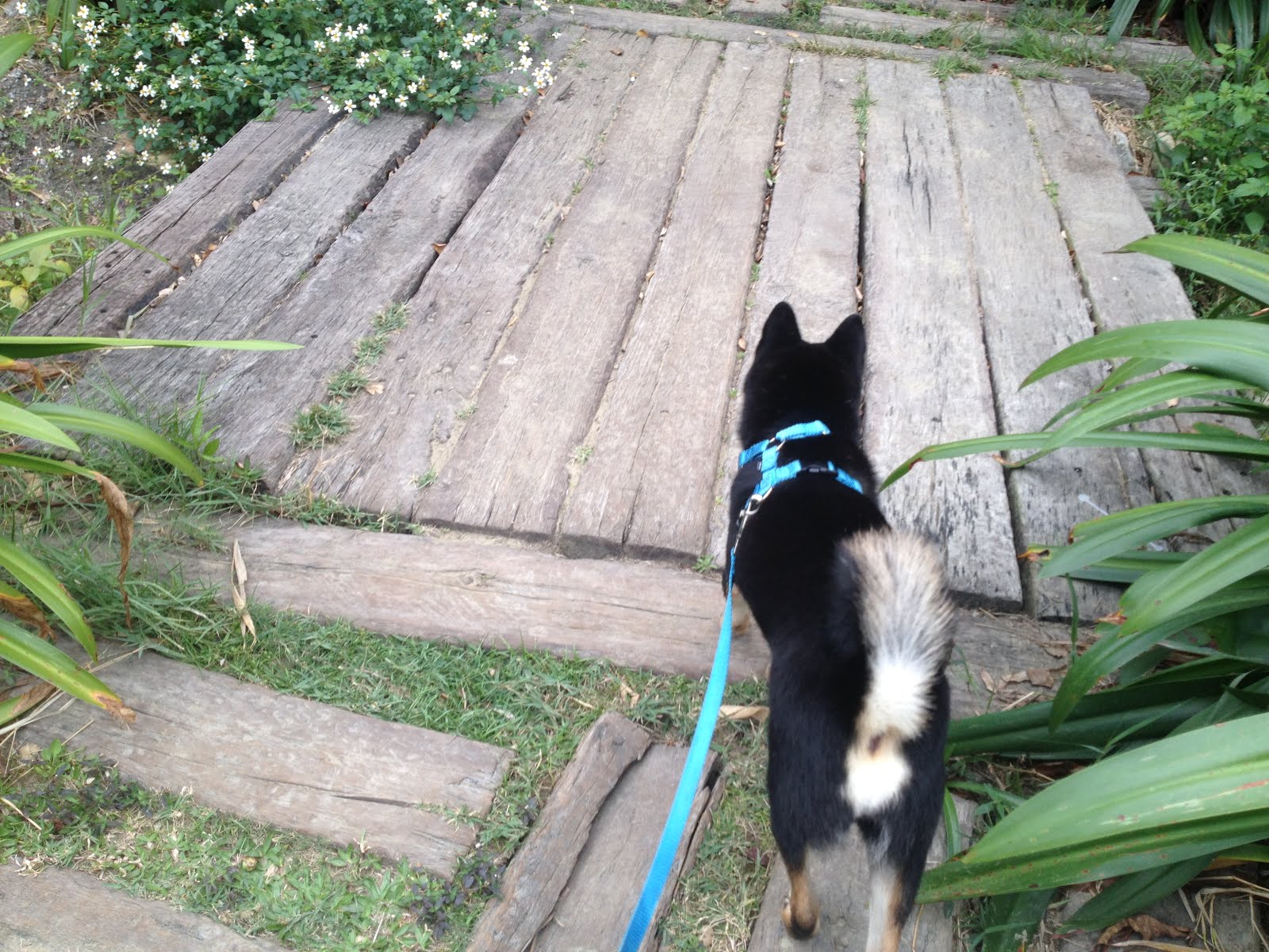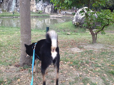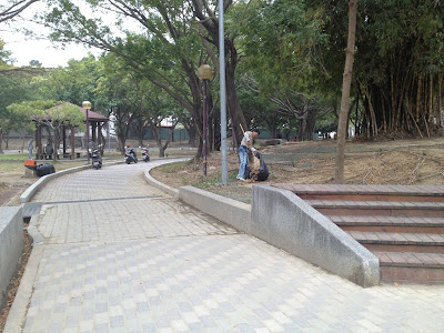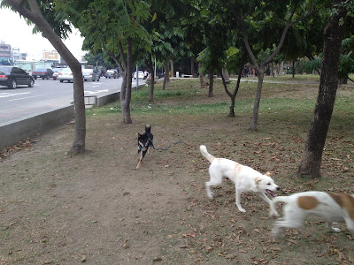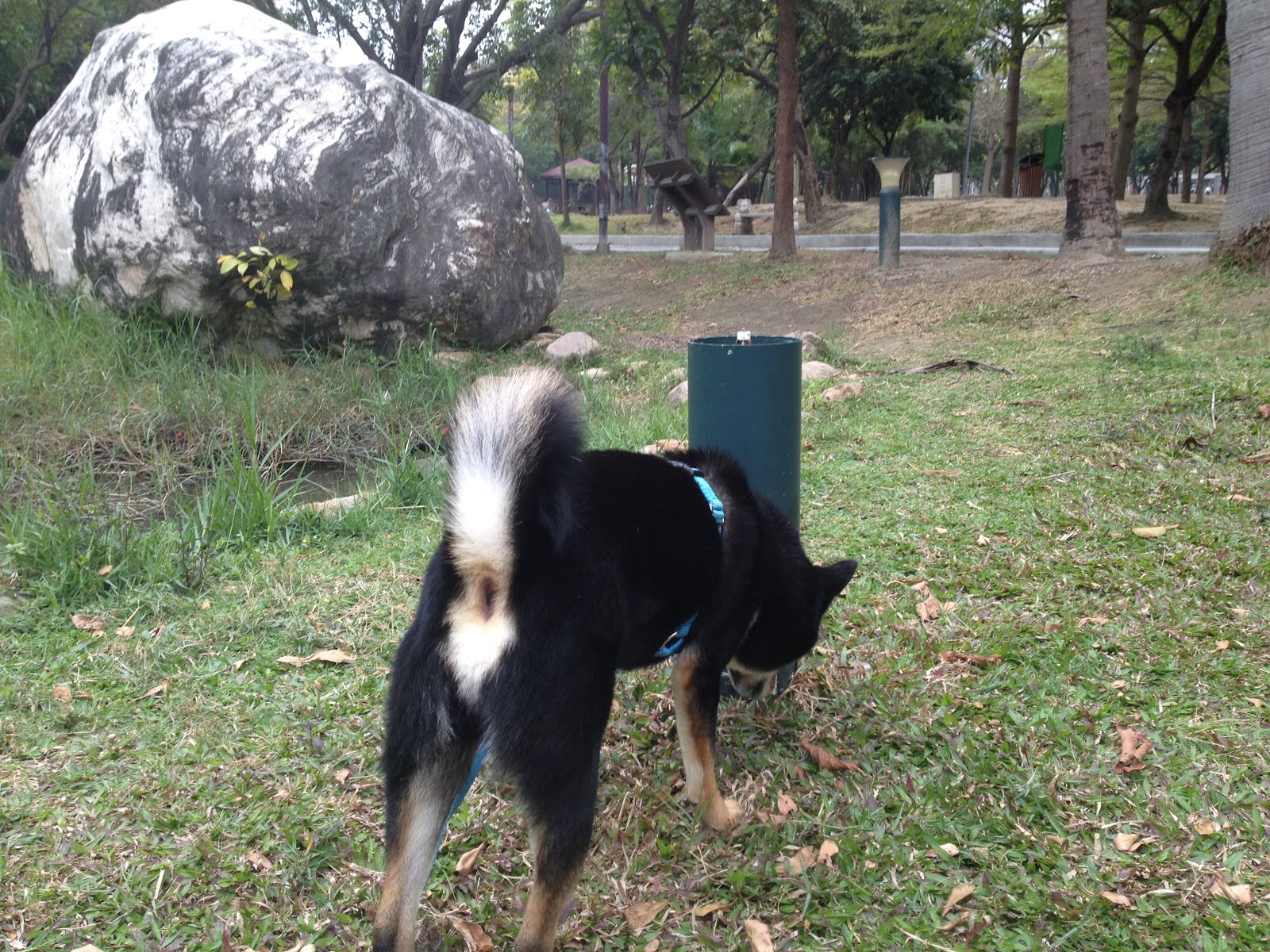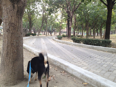 今天的地點是林森路不知名的公園,到了以後健一開始是一直在嗅聞並大小便,我則隨著他到處走動,牽繩當然是要維持鬆的。